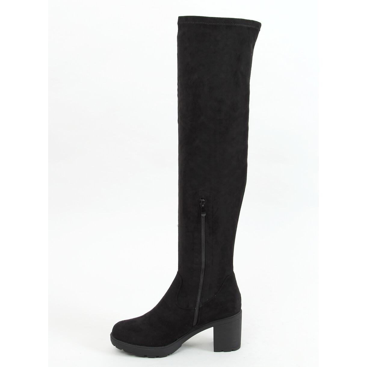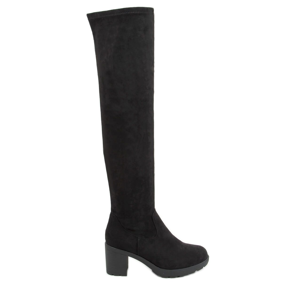 Inna marka Térdig érő csizma széles sarkú fekete Y8603 Fekete