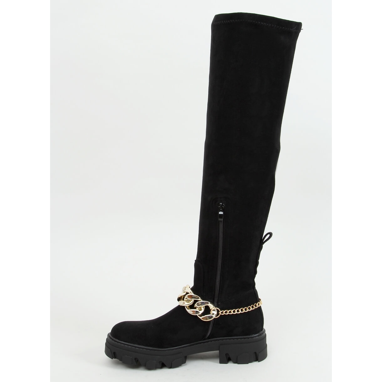 Inna marka Térdig érő csizma vastag talppal, ML174 Microfibre Black fekete
