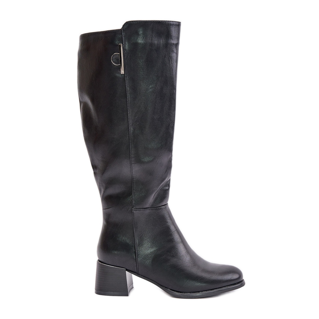 Részletek: Jezzi Térdig érő ökobőr magassarkú csizma, fekete Izanae