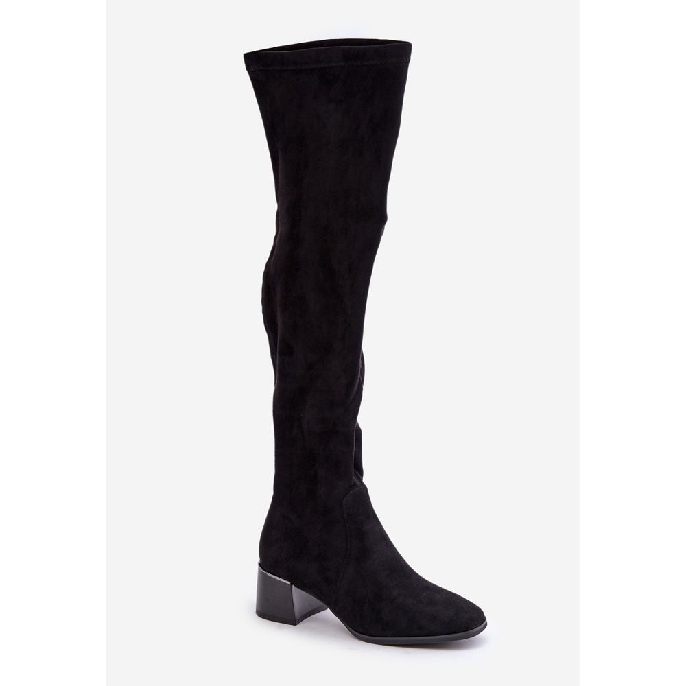 Részletek: Térdig érő tömbsarkú csizma öko-velúrból, Black Galadi fekete