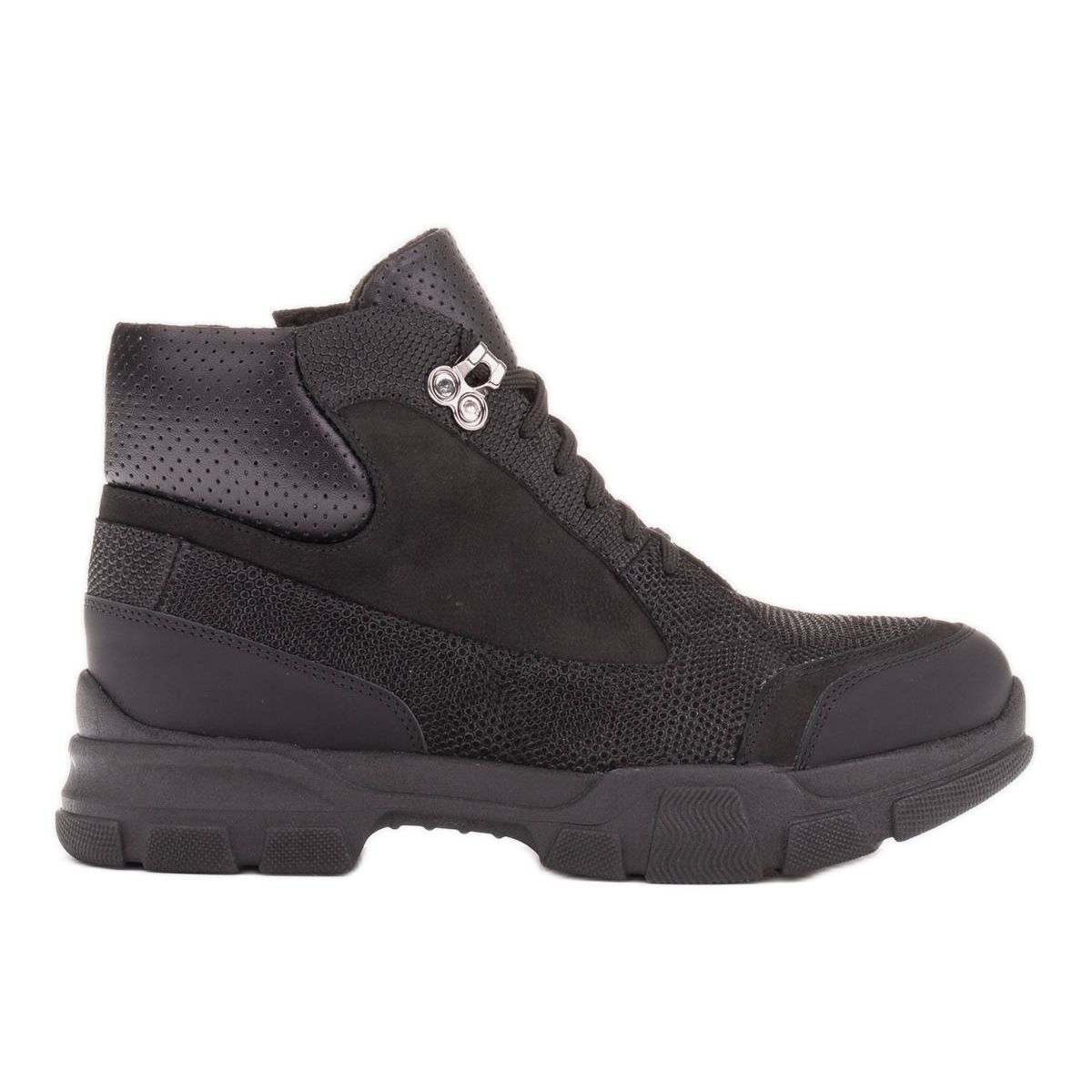 Részletek: Marco Shoes Természetes bőr túracipő fekete