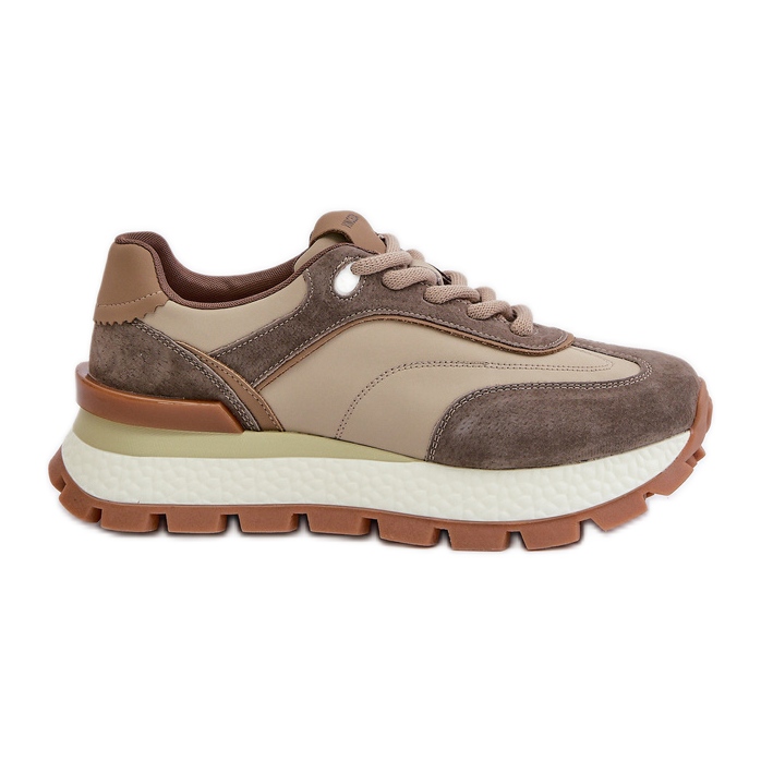 Ezek a bézs cipők, amelyek felső része 6 cm és 3,5 cm magas platformon van, tökéletesen kiegészítik mind a sportot, mind az elegánsabb ruházatot. A csipke -rögzítőelem lehetővé teszi, hogy a cipőt a láb egyedi szakaszához igazítsa, ami biztosítja a nagyobb vigasztalást.