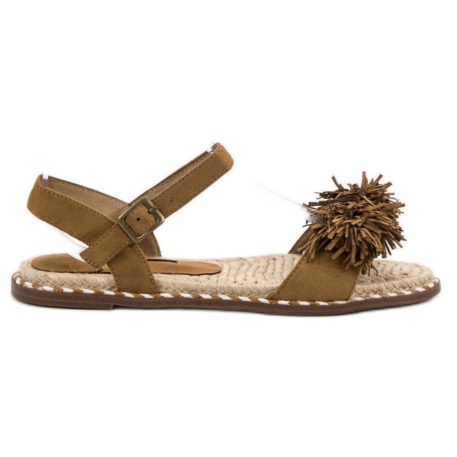 Kiváló minőségű ökológiai bőrből készült, velúr bevonattal, a Corina szandálok nemcsak esztétikusak, hanem tartósak is. Lapos, 2 cm magas sarkuk van, amely hosszú séták vagy intenzív munkanapok során is kényelmes viseletet biztosít. További előny a pomponok, amelyek eredeti karaktert adnak a cipőknek.