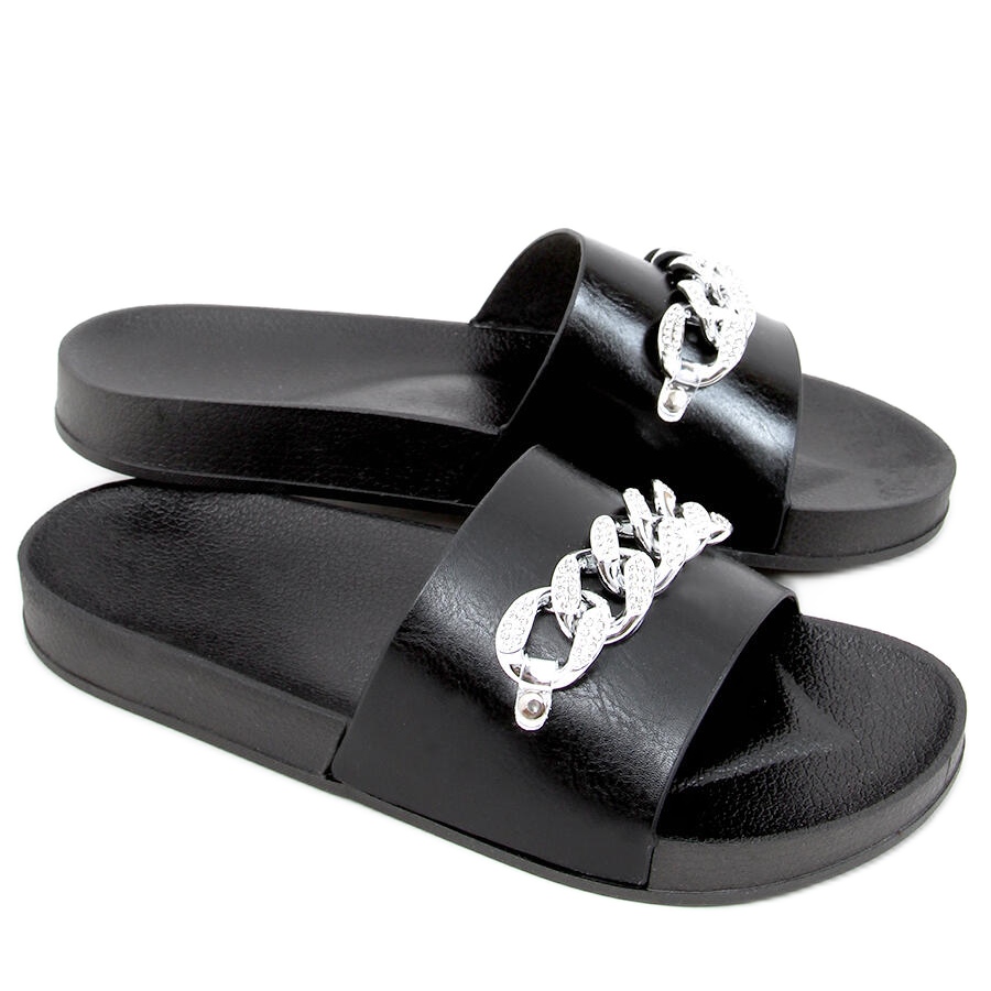 Bemutatjuk a Tilia Black láncos papucsokat - minden divatos nő kötelező darabja ebben a szezonban! Ezeket az elegáns fekete papucsokat a stílusos, fényes kövekkel díszített lánc jellemzi, amely felhívja magára a figyelmet és egyedi karaktert kölcsönöz minden stílusnak. Lapos saroknak és profilozott belső talpbetétnek köszönhetően egész nap kényelmes viselet - mindennapi használatra tökéletes!
