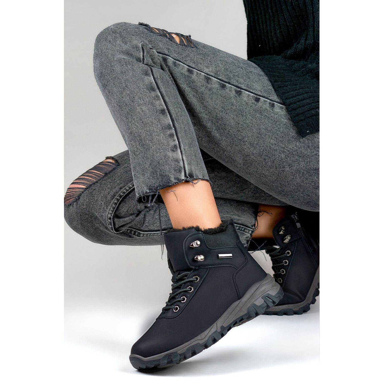 A fekete kivitelben lévő cipő klasszikusnak és univerzálisnak tűnik, amelynek tökéletesen belekeveredik mind a városi stilizációkban, mind a szilárd kültéri lábbeliben.