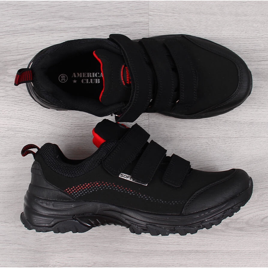 Részletek: Trekking cipő tépőzáras vízálló fekete-piros American Club-al