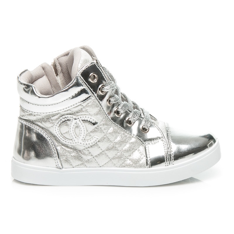 Stílusos, praktikus és tele van pompával - A szürke színű tükör cipők minden lány számára nagyszerű választás. A cipő a kockák fölé kerül, és ragaszkodnak, köszönhetően jól alkalmazkodnak a lábhoz, és stabilizálják azt játék közben. Az ezüstös befejezés hozzáadja a karaktert, és minden nap alkalmi stilizációkkal jár.
