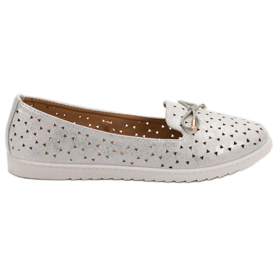 A szürke árnyalatú VINCEZA Lords With Bow tökéletes választás a tavaszi/nyári szezonra. Ezek a stílusos és praktikus cipők tökéletesek a mindennapi stílushoz, a kényelmet a divatos megjelenéssel kombinálják. Kiváló minőségű textil anyagokból készültek, kiváló légáteresztő képességet biztosítanak, ami különösen fontos a melegebb napokon. Áttört mintájuk könnyedséget kölcsönöz minden ruhának, a bájos masni pedig egyedi karaktert kölcsönöz nekik.