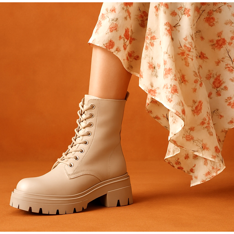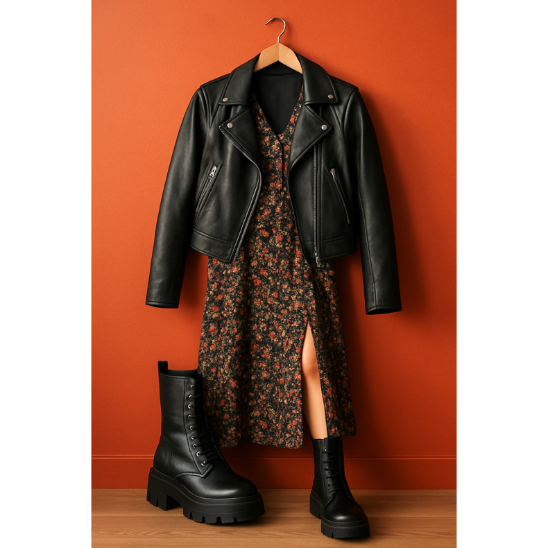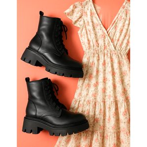 A nehéz munkáscsizmák és a finom virágos ruhák kombinációja klasszikus, amely mindig működik. Válasszon olyan midi vagy maxi ruhát, amelynek hasítéka felfedi a cipő felső részét. Adjon hozzá bőr motoros kabátot vagy túlméretezett kabátot. Ez a szett tökéletes egyensúlyt teremt a rock stílus és a romantikus kislányosság között. Ne feledje, hogy ne vigye túlzásba a kiegészítőkkel - a cipő itt elég erős akcentus.