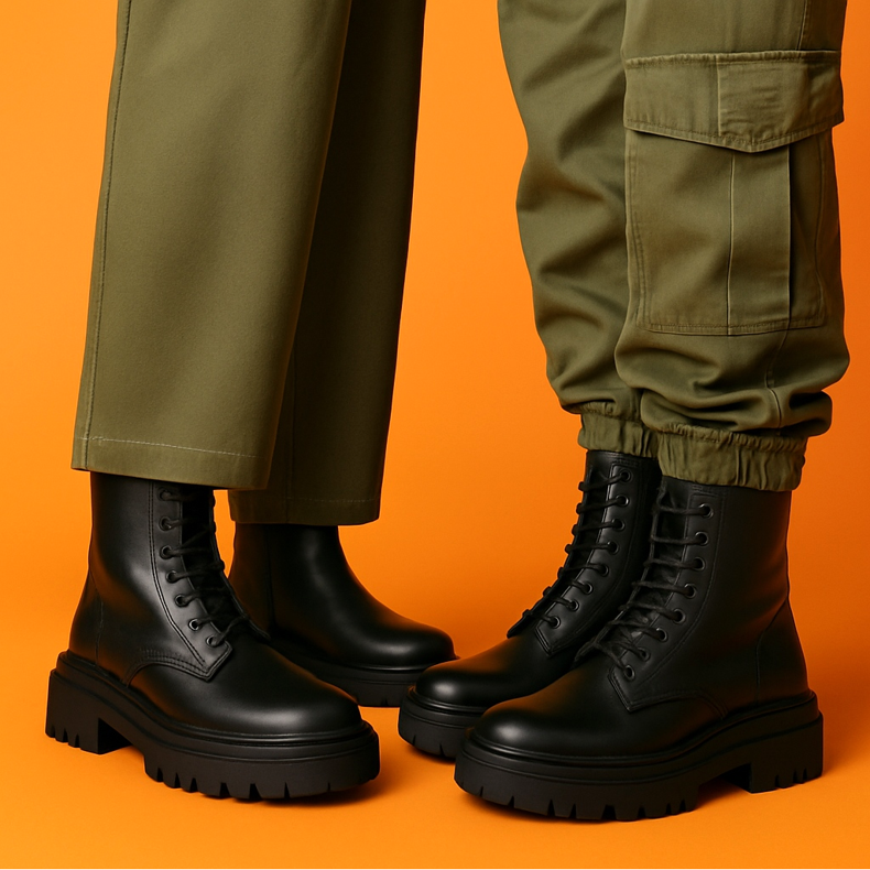 Ha a nadrágot részesíti előnyben, akkor a vaskos csizmák az egyenes vagy széles szárú modellekkel mutatnak a legjobban, amelyek enyhén a cipő fölé esnek, de nem fedik le teljesen. A nadrágszárakat is behúzhatja (katonai stílusban), ha tehernadrágja vagy kocogója van. Kerülje a nagyon szoros csövekkel való kombinálást, hacsak nem szeretné elérni a „bújj a cipőben” hatást.