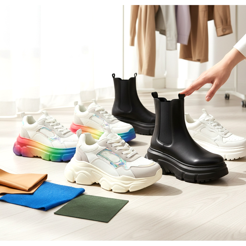 Nem minden vaskos cipő egyforma. Ha vaskos tornacipőt vagy platformcipőt vásárol, ügyeljen több kulcsfontosságú szempontra. Először is, a súly – a masszív megjelenés nem feltétlenül jelent nehéz cipőt. A modern anyagok, mint például az EVA hab vagy a könnyű műanyagok lehetővé teszik, hogy látványos talpakat alkoss, amelyek alig nyomnak többet, mint a klasszikus tornacipők.