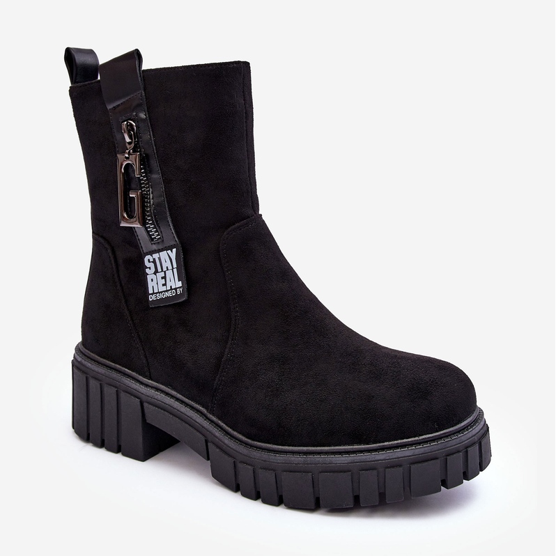 Eco velúrból készült stílusos, fekete csizma, amely egyesíti a divatos, hatalmas megjelenést a viselkedés kényelmével. Helyezze be a szilárd platformon és a lapos sarkú cipőn, lábbeli takaróval van szigetelve - tökéletes a hűvösebb őszi és téli napokhoz. A felső részén egy gyakorlati zárral rögzítve, lekerekített orrral a kényelem érdekében. A klasszikus, egységes formatervezés sok mindennapi és alkalmi stílusban fog működni.