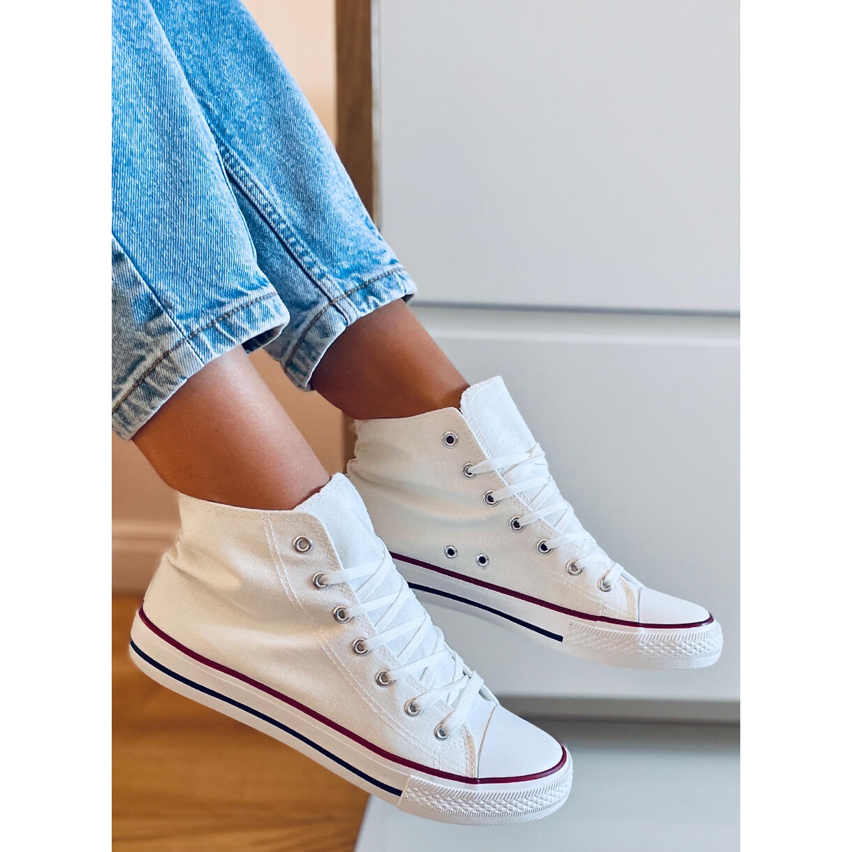 Bemutatjuk a Jude White vászon magasszárú tornacipőt klasszikus fehér színben, aminek minden női ruhatárban szerepelnie kell. Ezek az időtlen cipők a divatos dizájnt és a kényelmet ötvözik, így tökéletes választás a mindennapi használatra.