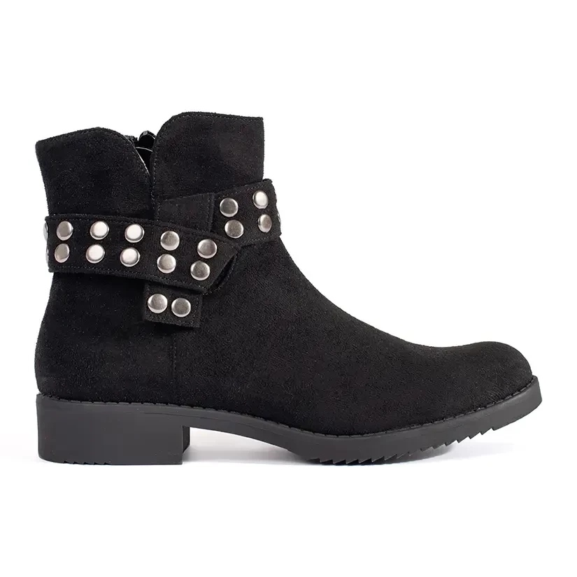 Inna marka Velúr, alacsony női bokacsizma strasszokkal fekete
