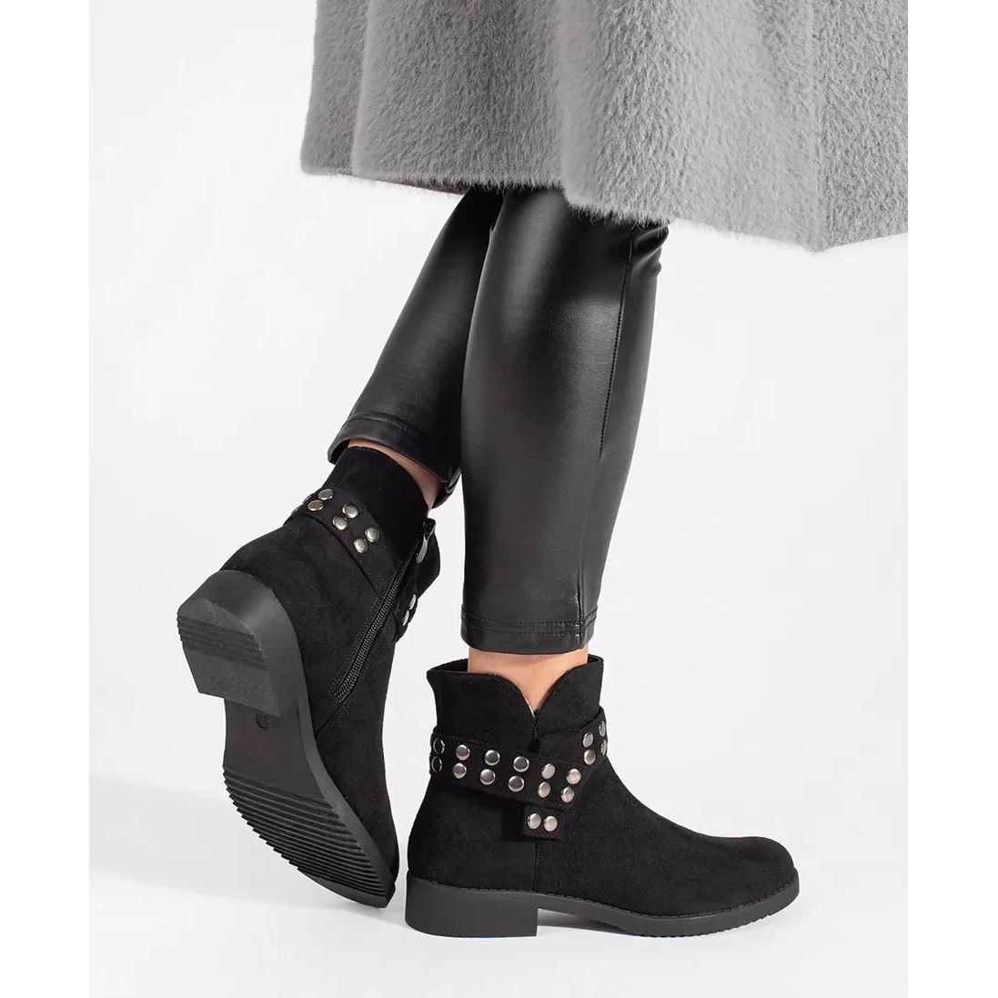 Részletek: Velúr, alacsony női bokacsizma strasszokkal fekete