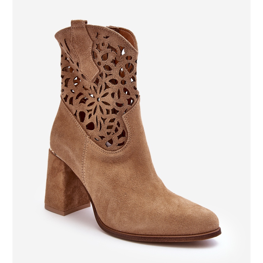 Lewski Shoes Lewski Shoes Velúr áttört bokacsizma Leewski cipő 3264 sötét bézs barna