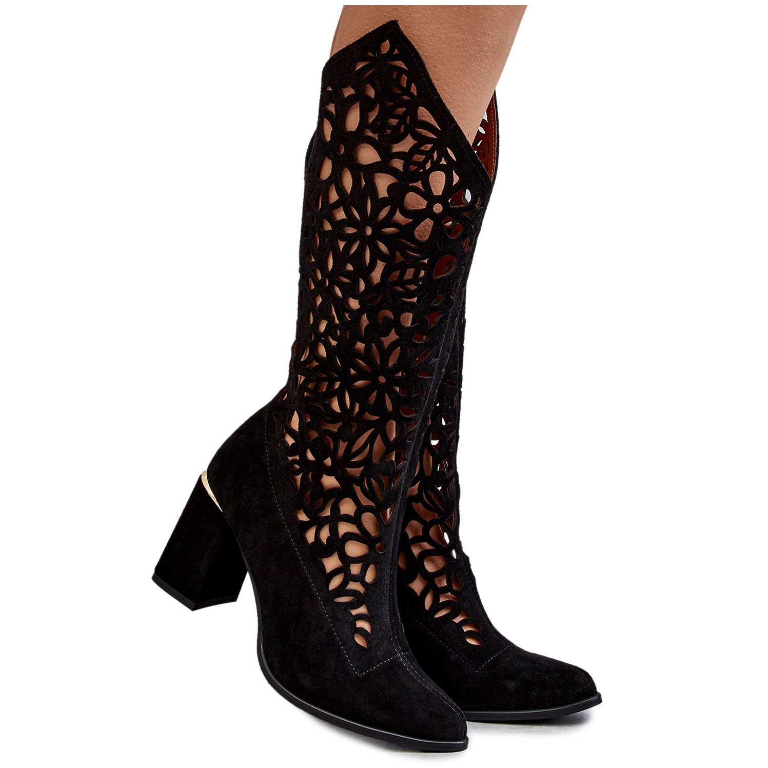 Lewski Shoes Lewski Shoes Velúr áttört csizma Leewski cipő 3234 fekete