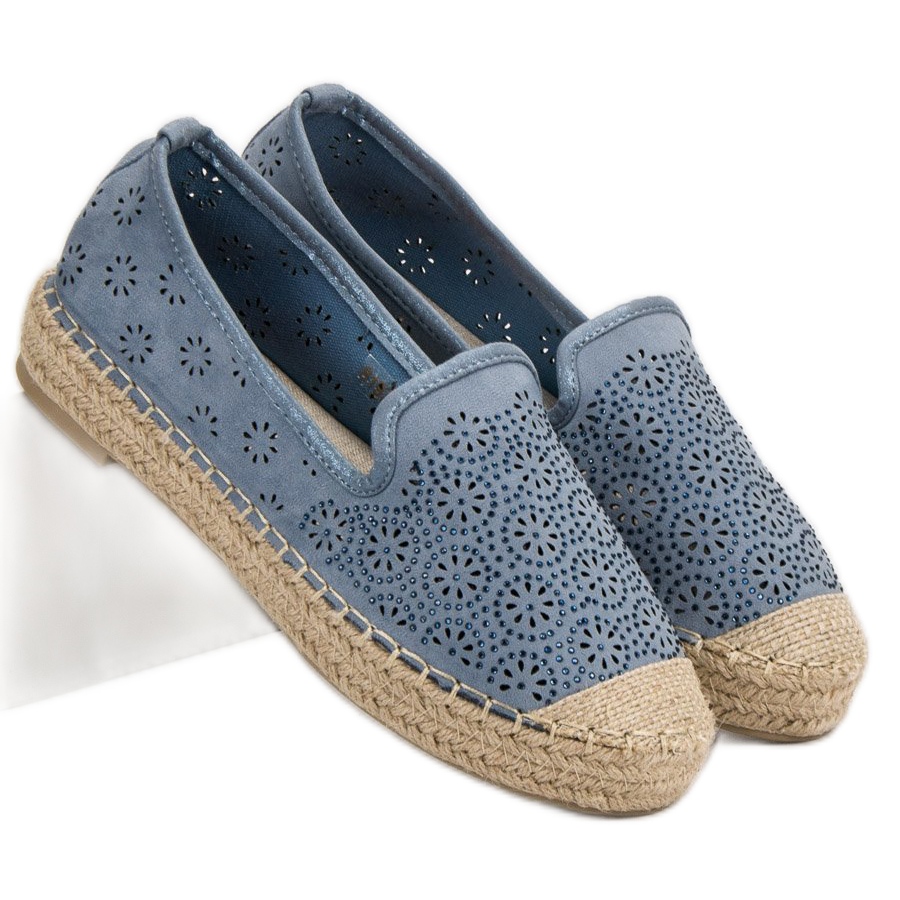 Fedezze fel a tökéletes lábbelit a nyári napokra - kék velúr espadrillákat áttört mintával! Ezek az egyedi cipők ötvözik az eleganciát és a kényelmet, és minden nyári stílus pótolhatatlan kiegészítőjévé válnak. Az ökológiai velúrbőr használatának köszönhetően az espadrillák nem csak környezetbarátak, de rendkívül stílusosak is.