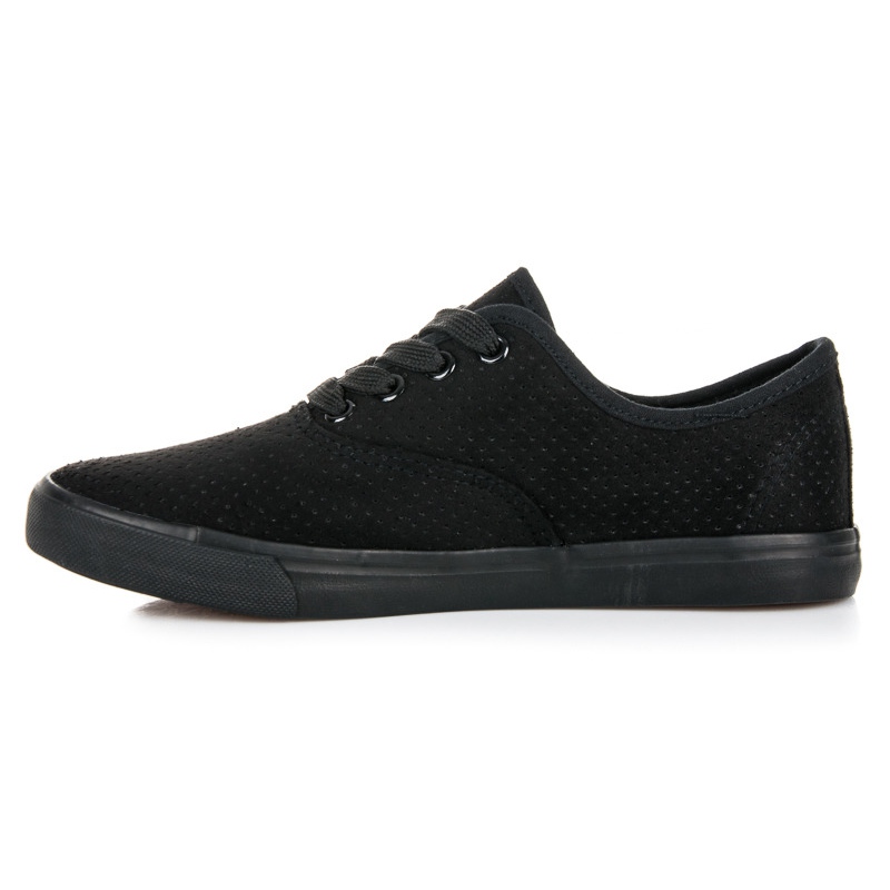 Íme a tökéletes lábbeli azoknak a nőknek, akik értékelik a stílust, a kényelmet és a funkcionalitást - Suede áttört tornacipő elegáns fekete színben. Ezek a női tornacipők kiváló minőségű áttört ökológiai velúrból készültek, így környezetbarát választás.