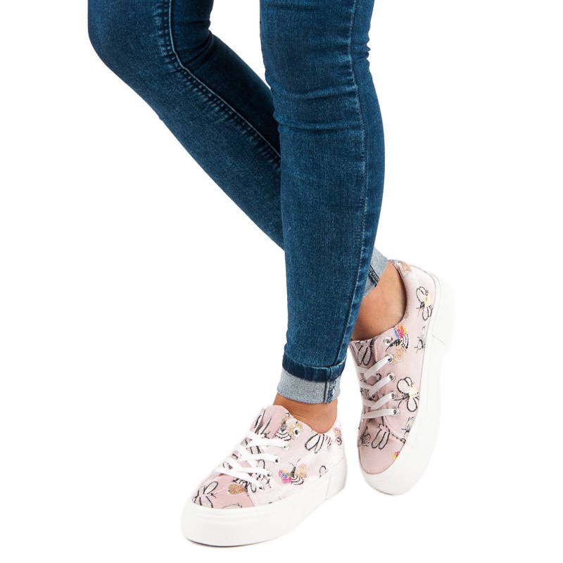 Bemutatjuk a Kylie márka bájos rózsaszín és fehér platformos tornacipőit. Ezek az egyedi cipők mesés, színes rovarmintával rendelkeznek, ami tökéletes módja annak, hogy bármilyen stílust felélénkítsen. Életkorától függetlenül minden nő értékelni fogja eredeti kialakítását és kényelmét.