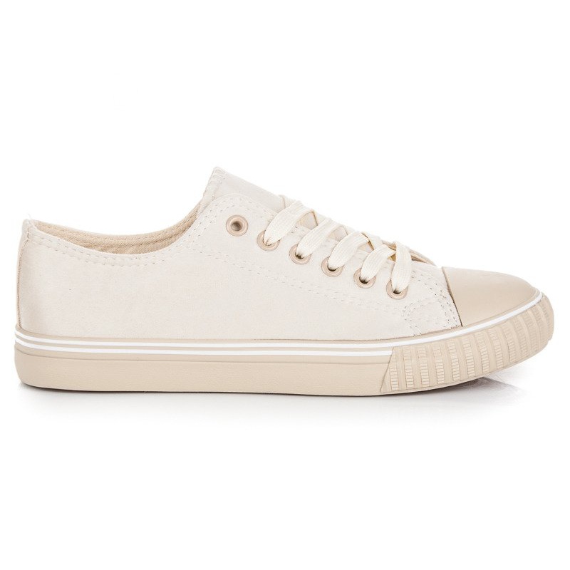 Íme a tökéletes választás a kényelem és a stílus szerelmeseinek - velúr tornacipők divatos, világos barna árnyalatban. Ezek az elegáns, 2 cm-es platformú cipők a modern dizájnt páratlan kényelemmel ötvözik. Kiváló minőségű ökológiai velúrból készültek, esztétikus megjelenést és a környezet ápolását egyaránt biztosítják.