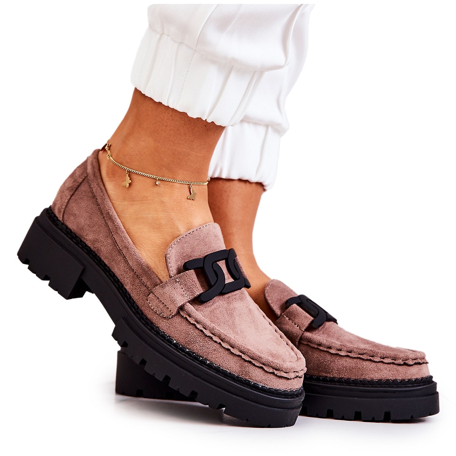 Az egyedi láncdísz karaktert kölcsönöz, így ezekben a naplopókban minden lépés igazi figyelemfelkeltő. A puha bőrbetét hosszú viselés esetén is komfortot garantál, a 2,5 cm vastag trapper talp pedig minden lépésnél biztosítja a stabilitást.