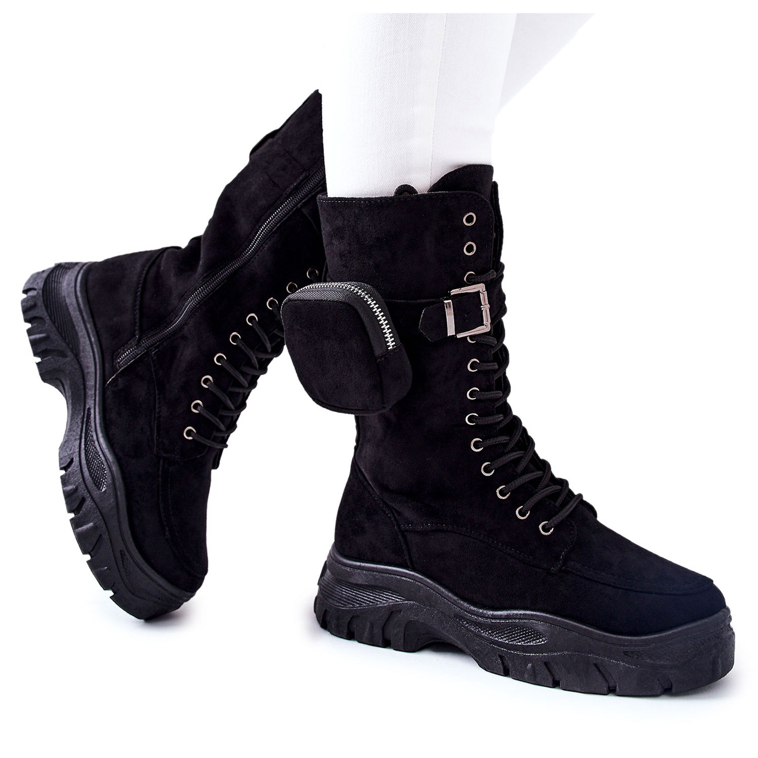 Az Issanti velúr platformcsizmák klasszikus fekete színben kaphatók, így a gardrób univerzális eleme. Tökéletesen passzolnak szoknyához, nadrághoz és ruhához, és egy kis élt adnak minden stílushoz. Ne felejtse el követni a mérettáblázatot a méret kiválasztásakor, hogy teljes mértékben élvezhesse a kényelmet.