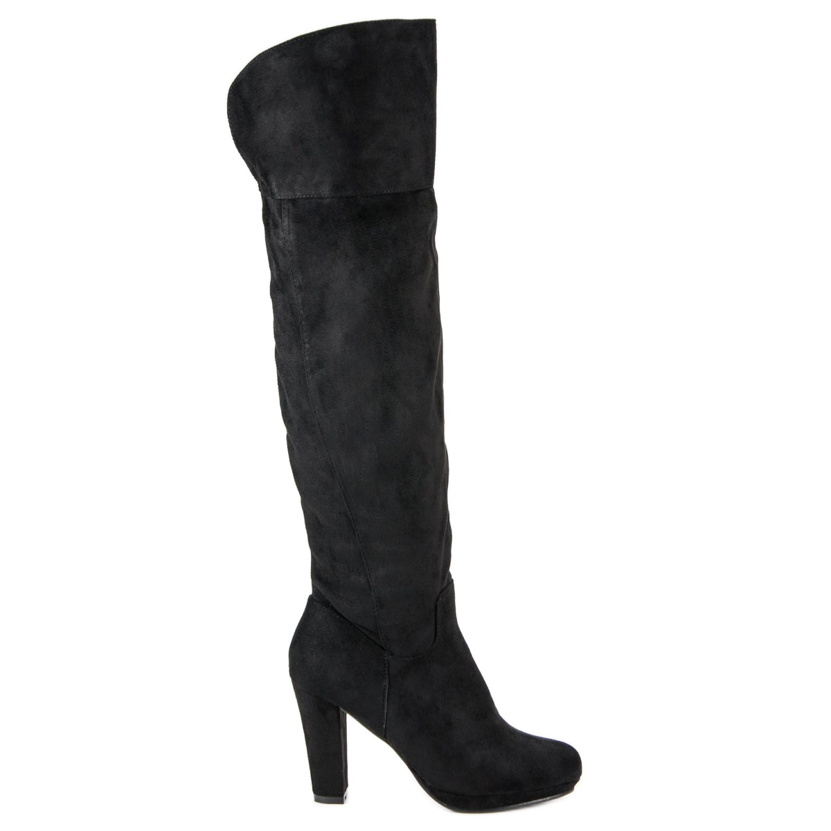 Egyedülálló fekete velúr magas sarkú csizmát mutatunk be, amely tökéletes kiegészítője lesz minden őszi-téli stílusnak. Kiváló minőségű ökológiai velúrbőrből készült elegáns cipők a kényelmet és a divatos dizájnt ötvözik. A magas, feltekerhető felsőrésznek köszönhetően igény szerint állítható a magasságuk, ami rendkívül univerzálissá teszi őket.