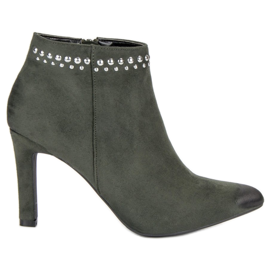 A Vinceza zöld velúr magas sarkú bokacsizma tökéletes választás azoknak a nőknek, akik elegáns lábbelit keresnek az őszi és téli szezonra. Kiváló minőségű, ökológiai velúrból készült stílusos bokacsizma egyedi árnyalatuknak és a felsőrész felső részén található strassz formájú finom díszítésnek köszönhetően vonzza magára a figyelmet.