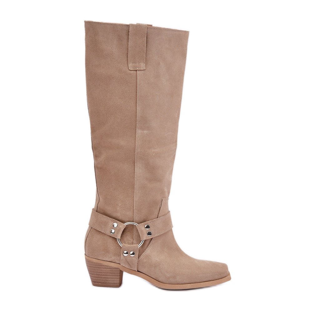 Részletek: Velúr csizma alacsony sarkú, térd feletti felsőrésszel Zazoo 3444/O világos bézs