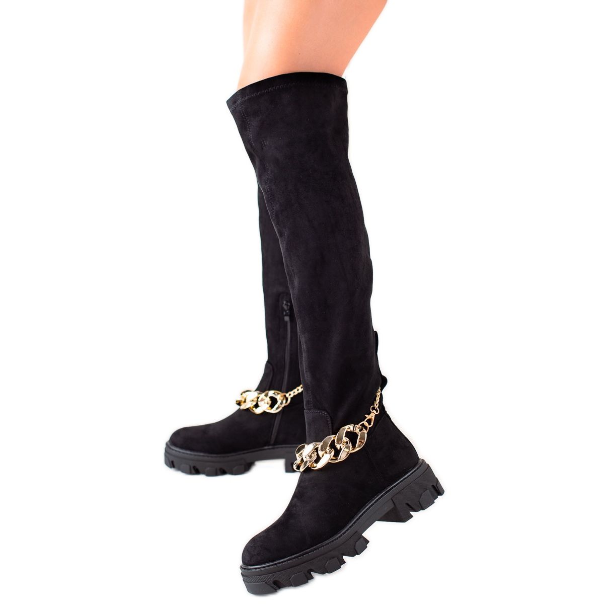 Diamantique Diamantique Velúr csizma arany lánccal fekete