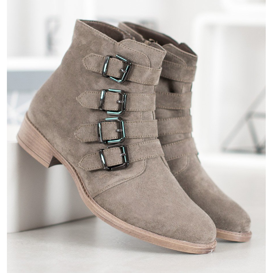 Bemutatjuk a Sergio Leone velúr csatos bokacsizmát elegáns khaki árnyalatban, mely tökéletes választás az őszi/téli szezonra. Kiváló minőségű ökológiai velúrbőrből készült női bokacsizma a stílust és a kényelmet ötvözi.