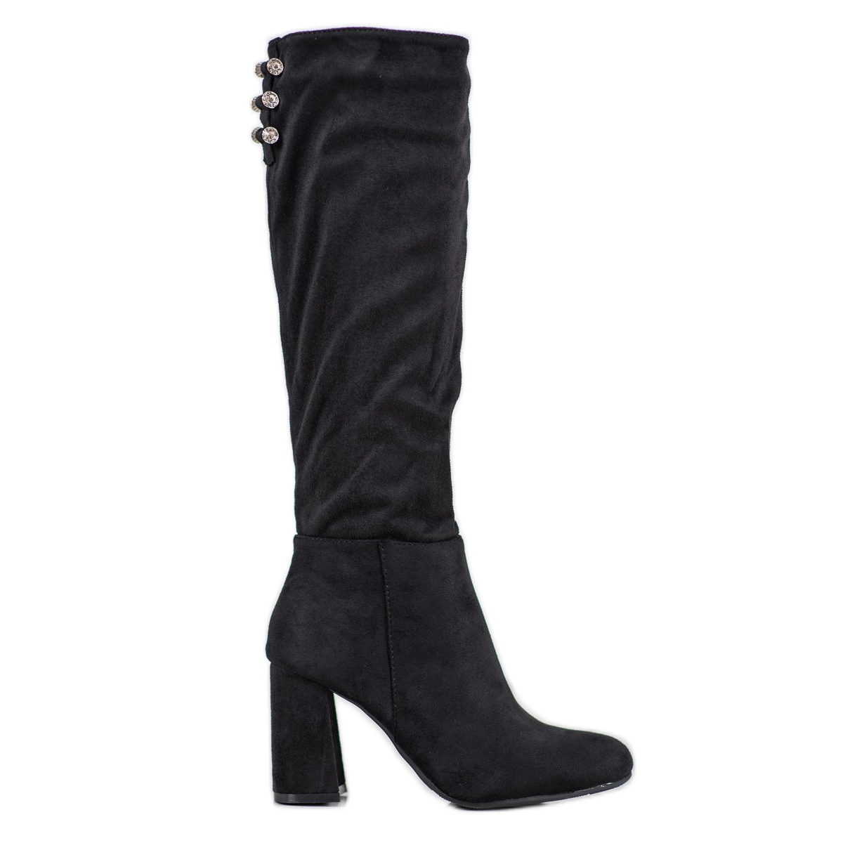 SHELOVET SHELOVET Velúr csizma köbös cirkóniummal fekete