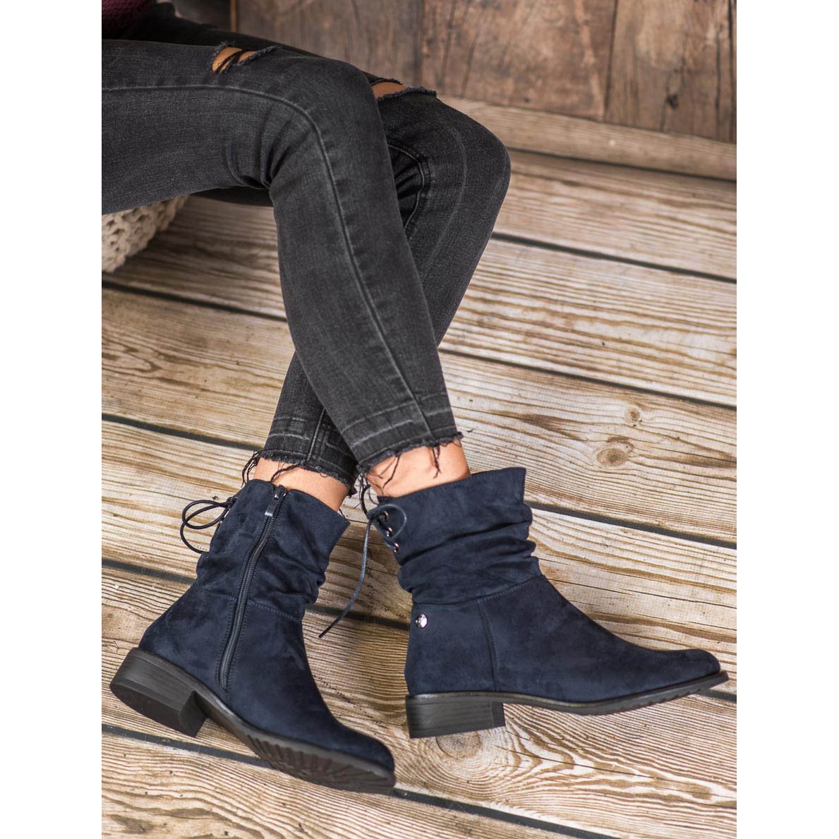 Flyfor Flyfor Velúr csizma lapos sarkon kék