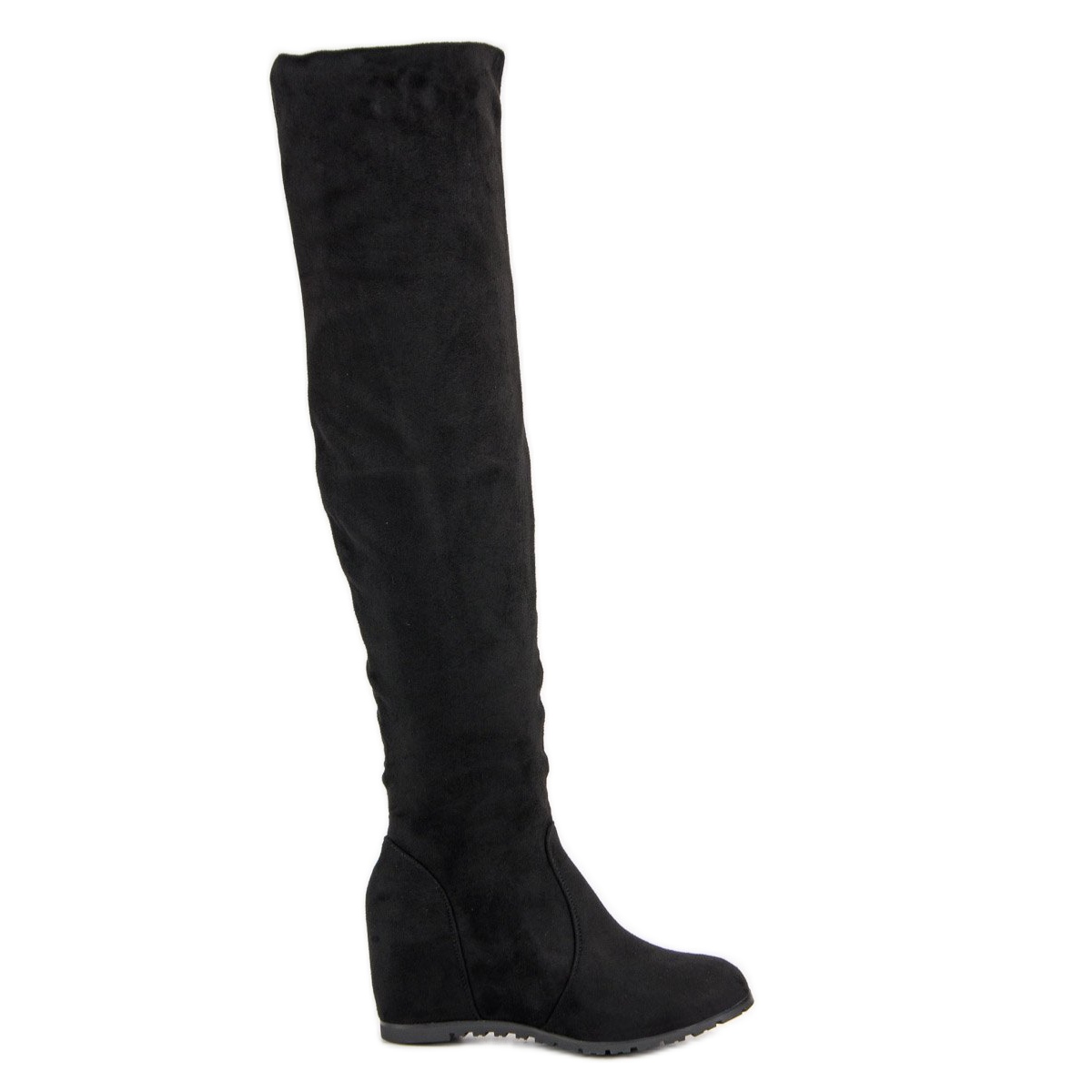 A csizmának magas, térd fölé érő felsőrésze van (57-59 cm), ami nem csak a hidegebb napokon ad további meleget, de a rejtett 9 cm magas éknek köszönhetően gyönyörűen karcsúsítja a lábakat. A cipzáras záródás megkönnyíti a fel- és levételüket, a kerek orr pedig finomságot ad.