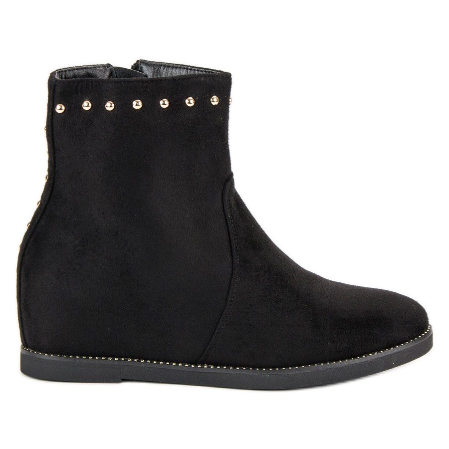 Ezeket a stílusos csizmákat fényes cirkóniák és strasszok formájában díszítik, amelyek egyedi karaktert kölcsönöznek nekik. A fekete egy klasszikus szín, amely tökéletesen passzol mind a hétköznapi, hétköznapi stílusokhoz, mind az esti kirándulások elegáns ruháihoz.