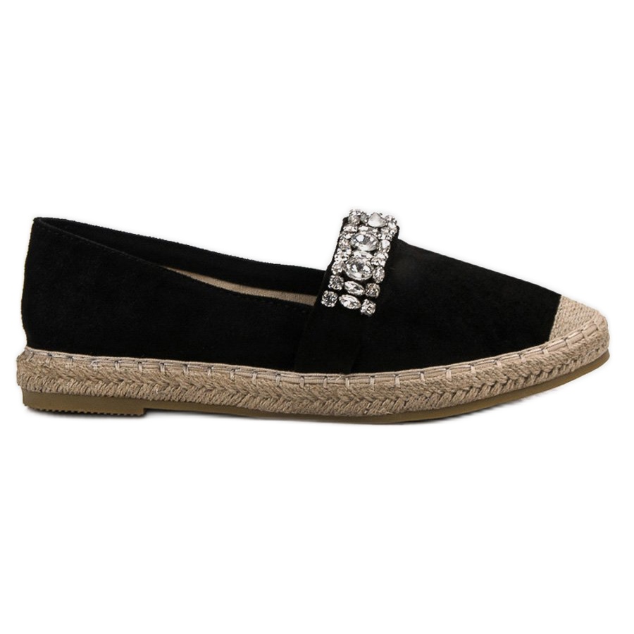 Bestelle Bestelle Velúr espadrillák kristályokkal fekete