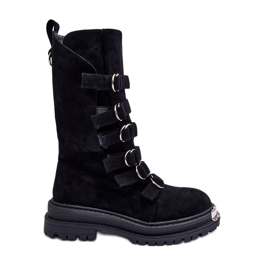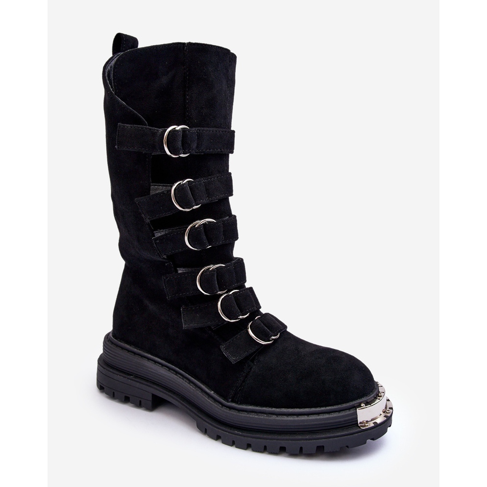 Részletek: Velúr High Worker bokacsizma pántokkal, fekete Elnatea