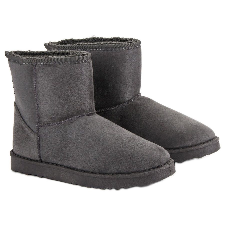 Fedezze fel a szürke velúr hócsizmát, amely egyesíti az eleganciát a praktikummal! Ez a stílusos téli női csizma tökéletes választás a hideg hónapokra, kényelmet és meleget biztosít a kiváló minőségű öko-velúr használatának köszönhetően.