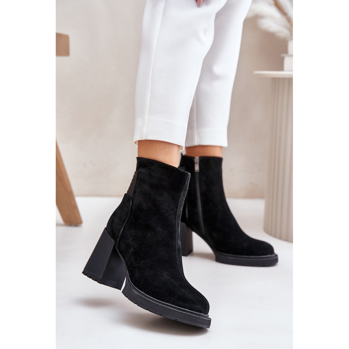 S.Barski S.Barski Velúr hőszigetelt magas sarkú bokacsizma D&A CR42-106 fekete