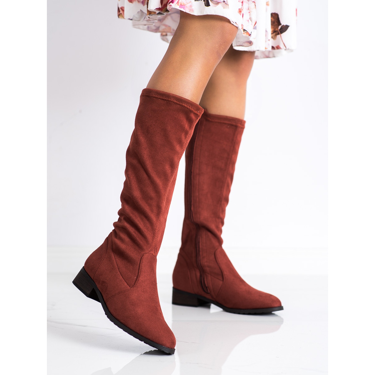 Részletek: M.Daszyński Velúr lapos sarkú csizma piros