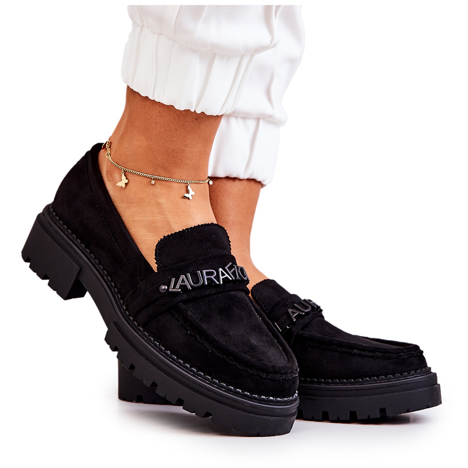 Részletek: PL5 Velúr Loafers Letters La.Fi Fekete Jenefer