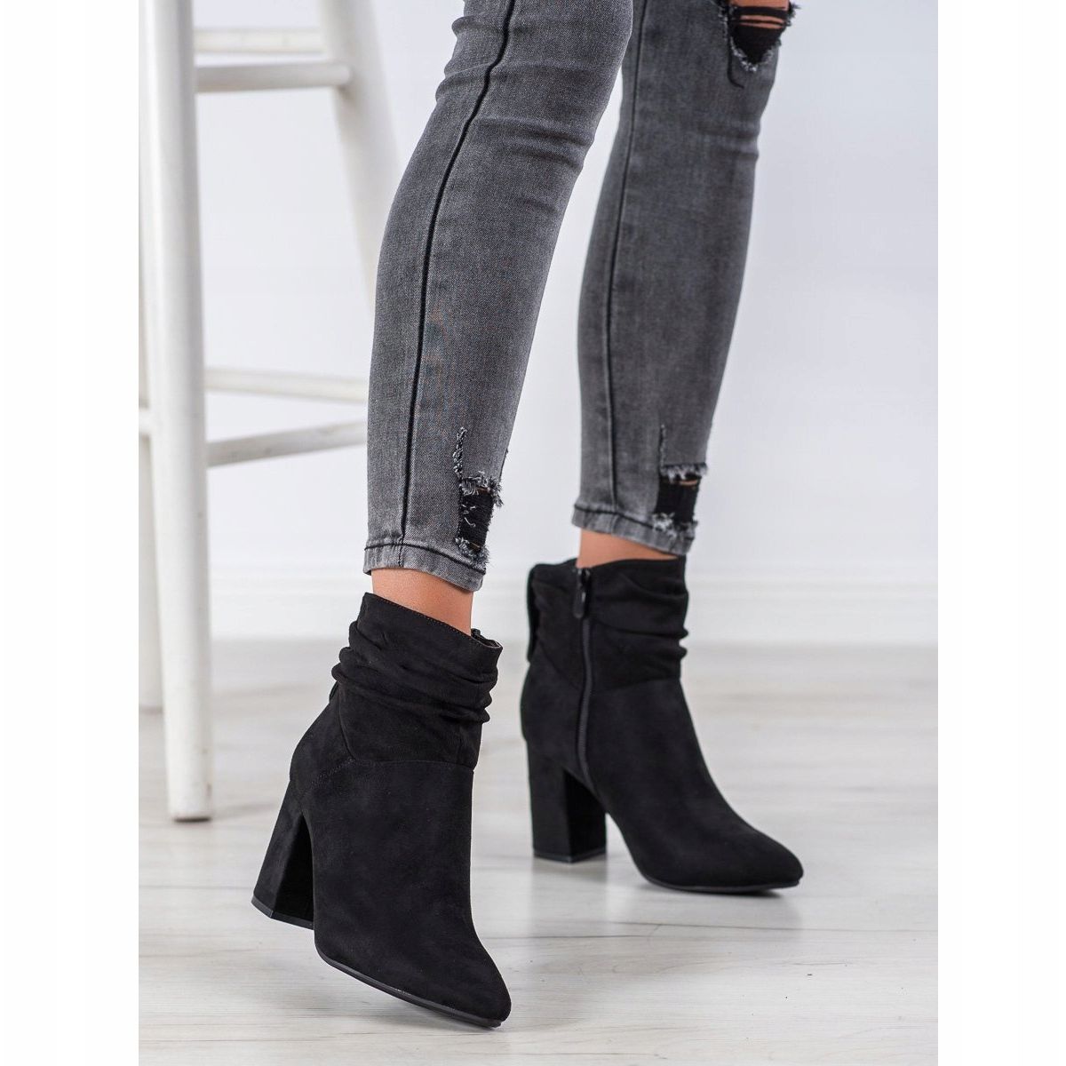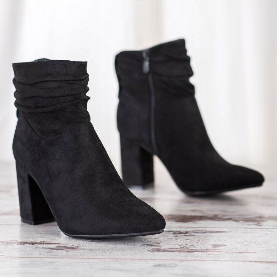 **SHELOVET velúr magas sarkú bokacsizma fekete**