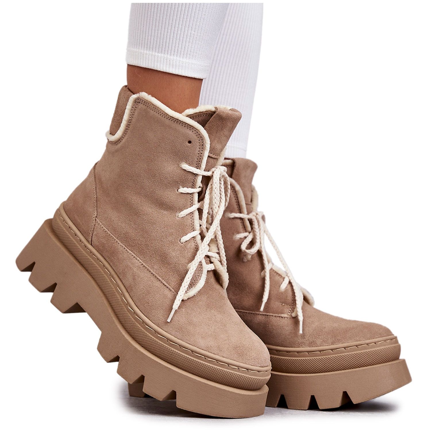 Részletek: PL5 Velúr meleg fűzős csizma bézs Elisabeth barna