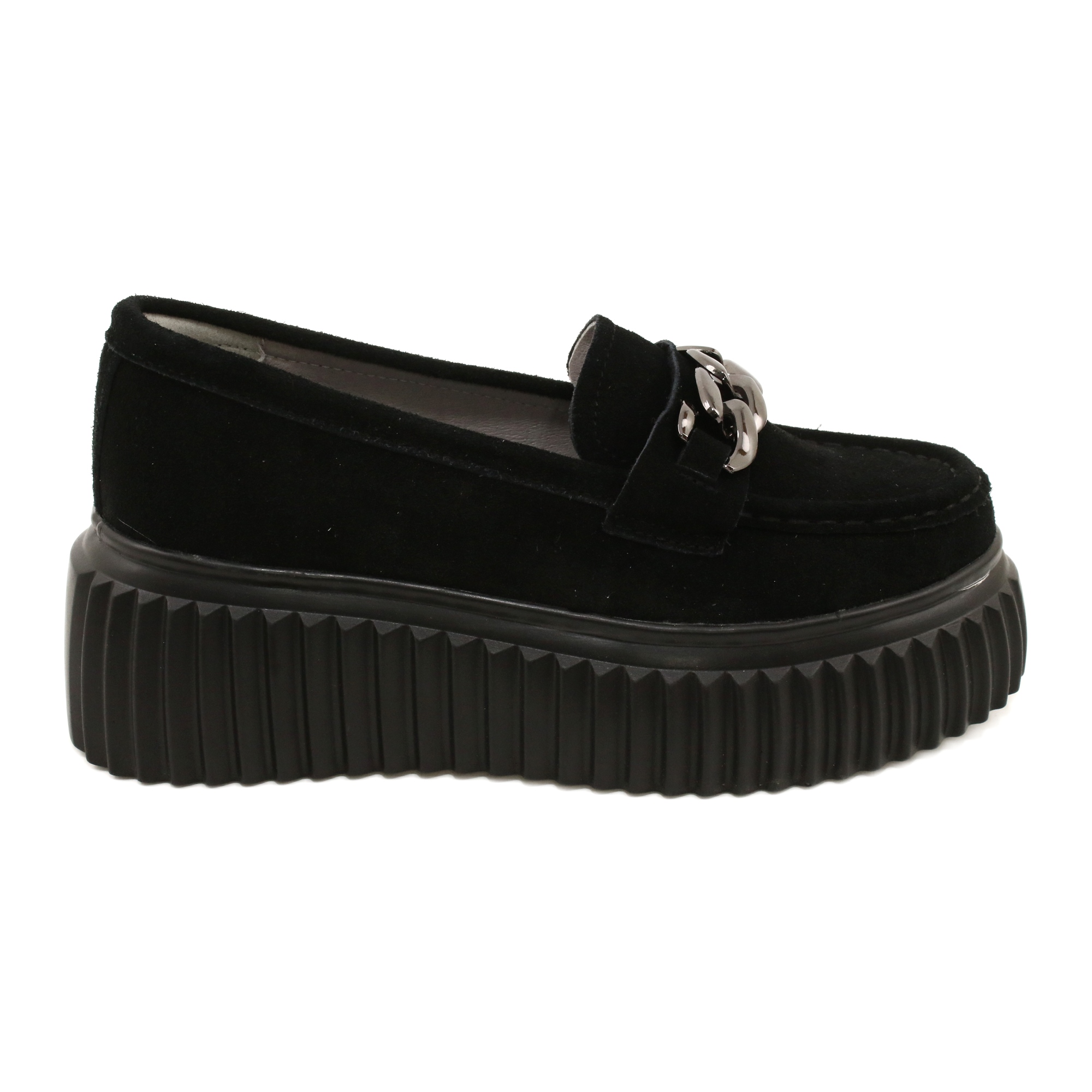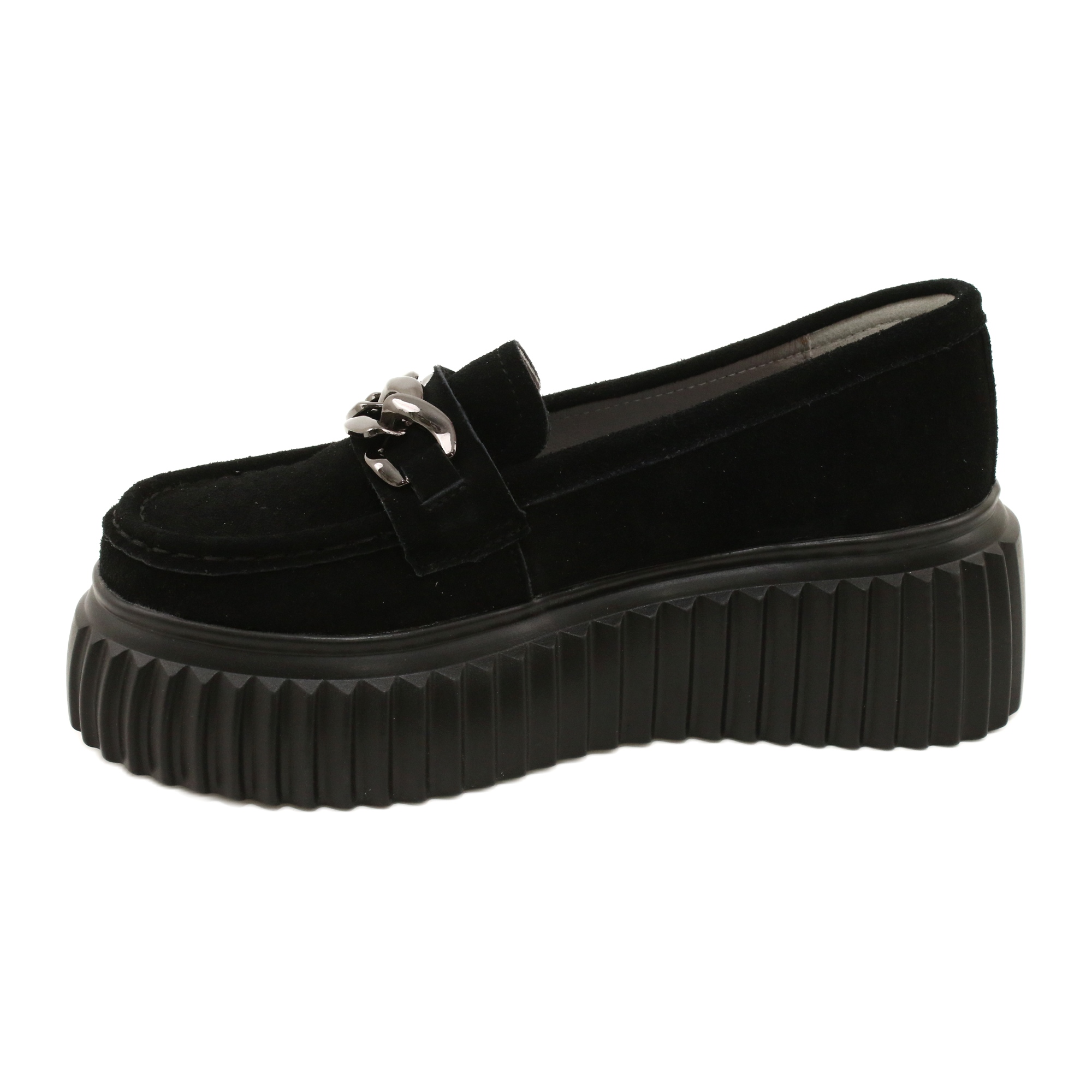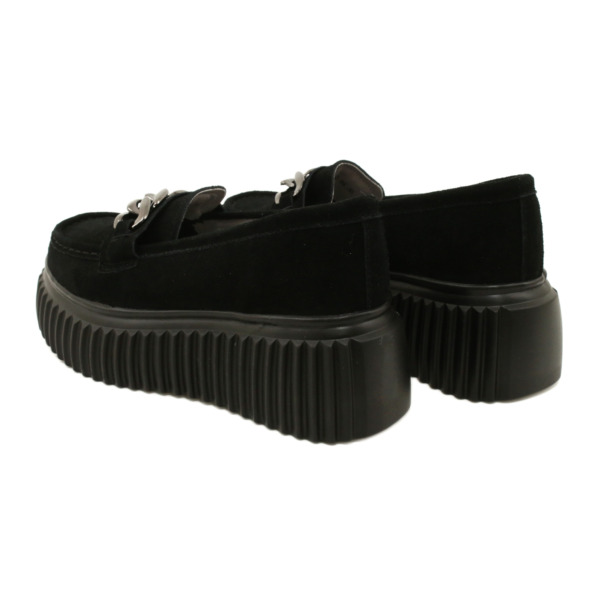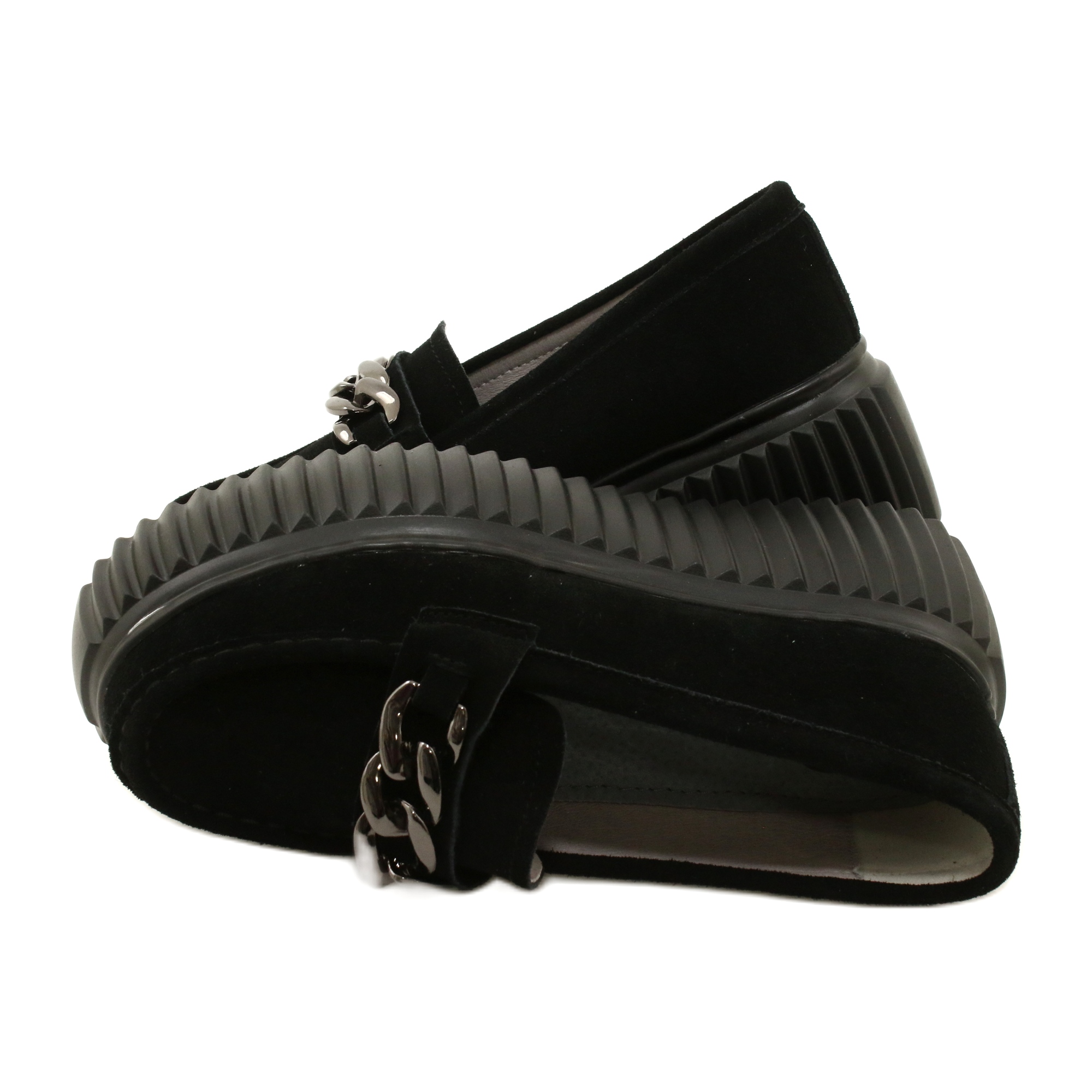 A klasszikus Loafer loaferek, amelyek egyesítik az időtlen kialakítást és a viselet kényelmét. A Filippo DP4450 mély fekete színű modell nagy minőségű velúrból készül (a gyártó leírása: ökológiai bőr velúr), egy tiszta, vastag talppal, amely karaktert ad a cipőhöz, és finoman modellezi az ábrát. Az elülső dekoratív lánc hangsúlyozza a cipő elegáns, városi természetét. Ez egy univerzális javaslat mind az iroda, mind a hétvégi outputok számára.