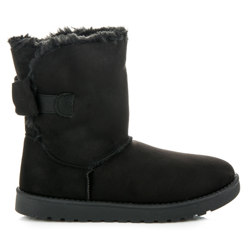 A fekete masnival ellátott velúr muklukok a melegség, a kényelem és a stílus tökéletes kombinációja a téli napokon. Ez a magas havas csizma elegáns megjelenésével és univerzálisságával tűnik ki, így könnyedén illesztheti sok téli stílushoz.