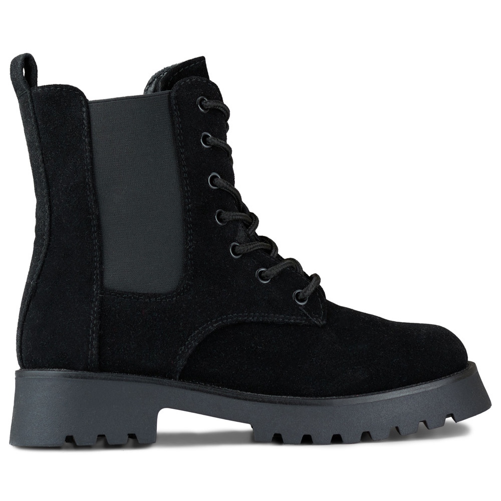 Részletek: Velúr munkás női fűzős Chelsea csizma Klara fekete