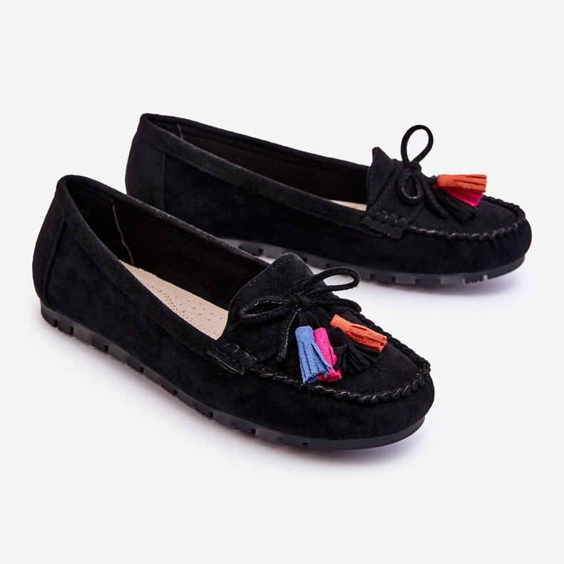 Részletek: PS1 Velúr naplopók masnival és bojtokkal, fekete Dorine