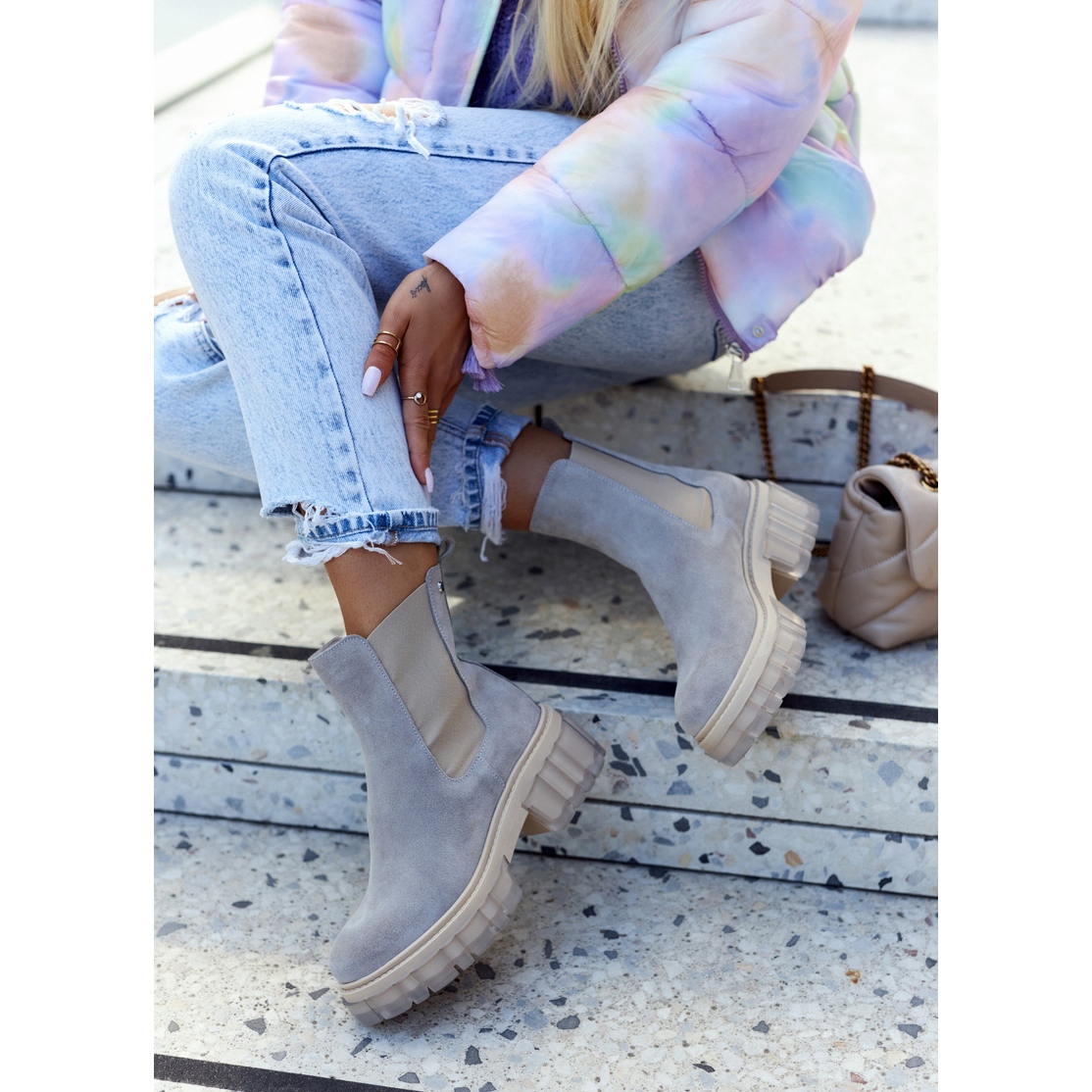 A természetes velúr bőrből készült bokacsizma nemcsak szemet gyönyörködtető, hanem egész nap kényelmes viselet is. Egy további rugalmas betét garantálja a felsőrész tökéletes illeszkedését, amely a boka fölé ér, ami nem csak elegánssá, hanem praktikussá is teszi.