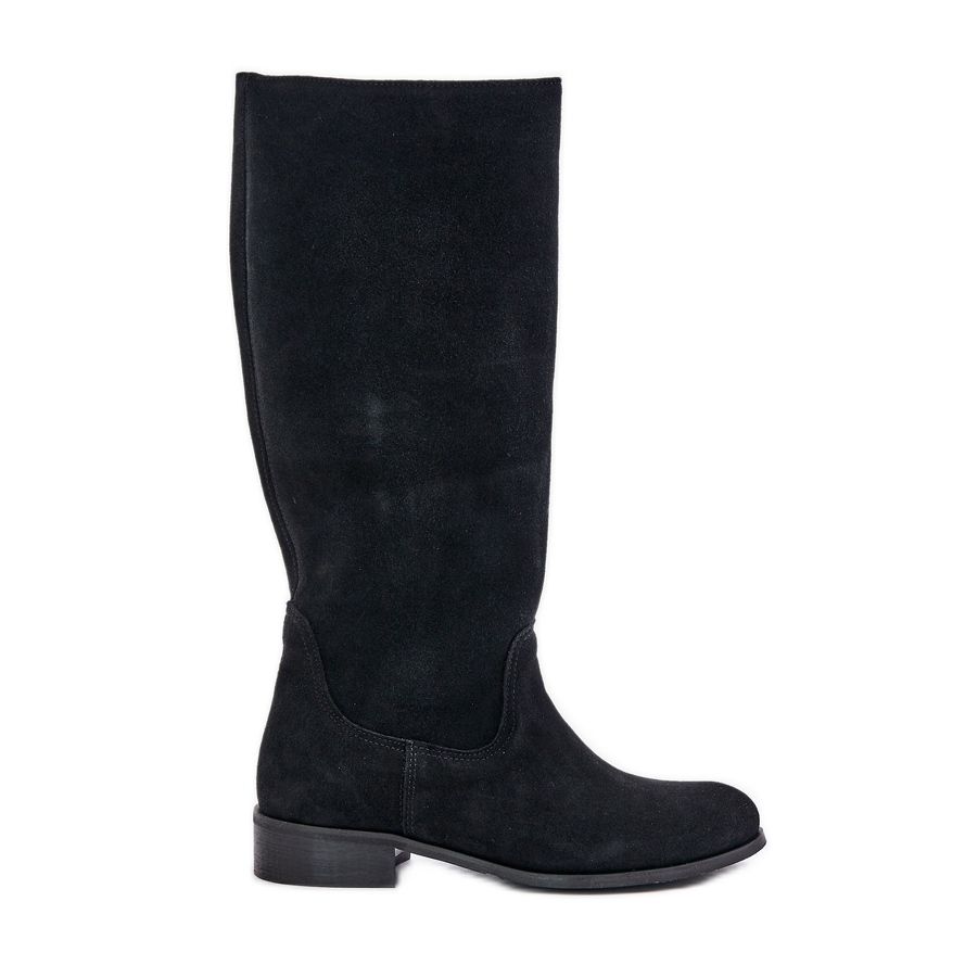 Lewski Shoes Lewski Shoes Velúr női lábszárközépig érő csizma bal cipzárral 3616 fekete